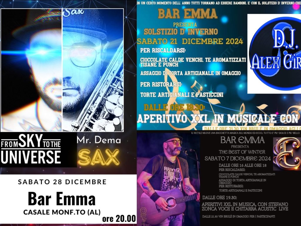 Al Bar Emma, ogni sera è un’occasione per creare ricordi indimenticabili, grazie alle nostre serate a tema musicale. Situati in Corso Indipendenza 57/B a Casale Monferrato, offriamo un’ampia varietà di eventi che uniscono buona musica, atmosfera e ottimo cibo.